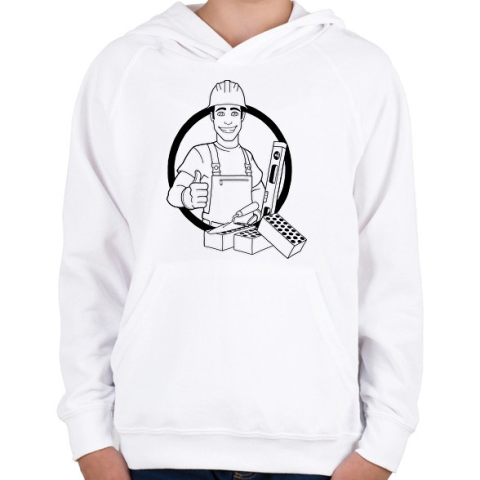 1 kép PRINTFASHION kőműves - Gyerek kapucnis pulóver - Fehér