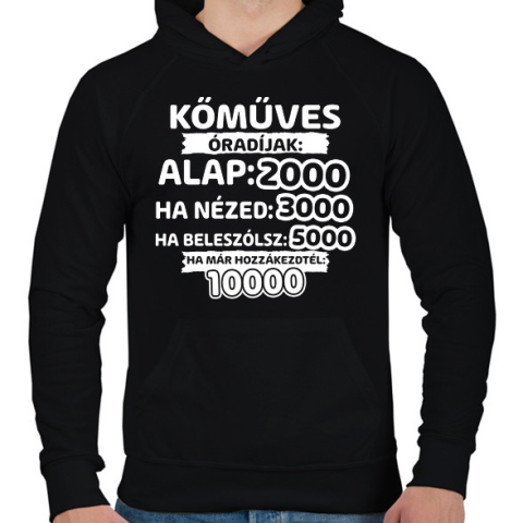 1 kép PRINTFASHION Kőműves óradíjak - Férfi kapucnis pulóver - Fekete