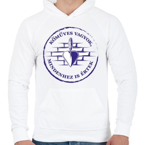 1 kép PRINTFASHION Kőműves vagyok, mindenhez IS értek - Férfi kapucnis pulóver - Fehér