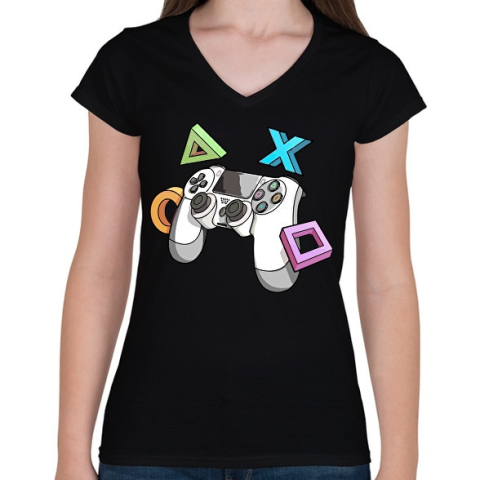 1 kép PRINTFASHION Kontroller - Női V-nyakú póló - Fekete