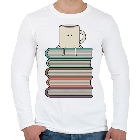 1 kép PRINTFASHION Könyvek és kávé - Férfi hosszú ujjú póló - Fehér