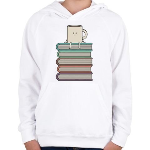 1 kép PRINTFASHION Könyvek és kávé - Gyerek kapucnis pulóver - Fehér