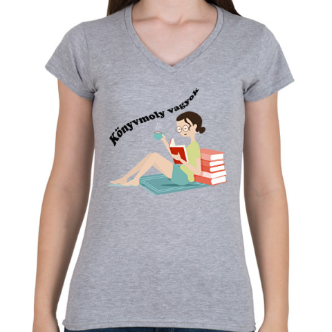 1 kép PRINTFASHION Könyvmoly - Női V-nyakú póló - Sport szürke