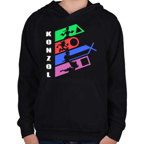 1 kép PRINTFASHION Konzol PSX - Gyerek kapucnis pulóver - Fekete