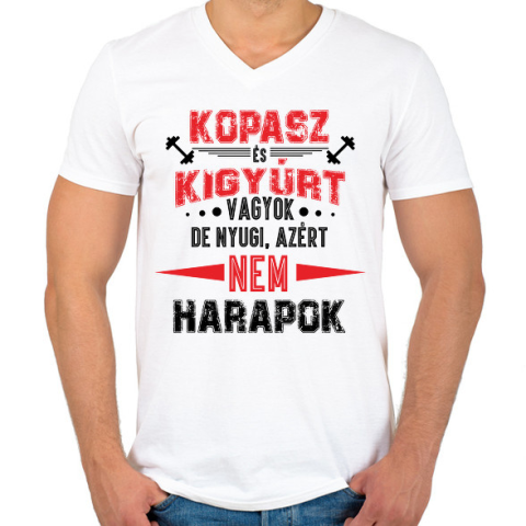 Egyedi mintás férfi vnyakú póló, pamut anyagból. Tökéletes ajándék férfiaknak, akik szeretik az egyedi mintákat az alábbi témákban: