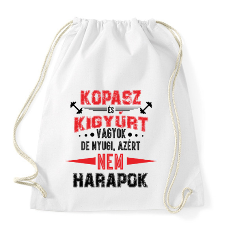 1 kép PRINTFASHION Kopasz és kigyúrt vagyok - Sportzsák, Tornazsák - Fehér