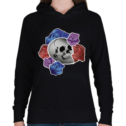 1 kép PRINTFASHION koponya és rózsák - Női kapucnis pulóver - Fekete