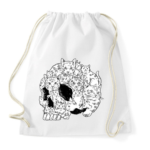 1 kép PRINTFASHION Koponya macskákból - Sportzsák, Tornazsák - Fehér