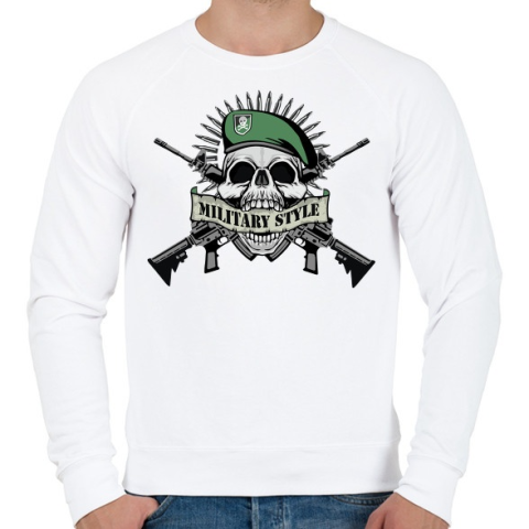 1 kép PRINTFASHION Koponya - Military style - Férfi pulóver - Fehér