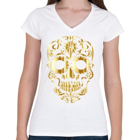 1 kép PRINTFASHION Koponya - Női V-nyakú póló - Fehér