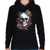 1 kép PRINTFASHION koponya pillangókkal és virágokkal - Női kapucnis pulóver - Fekete