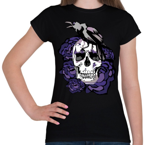 1 kép PRINTFASHION koponya rózsával - Női póló - Fekete