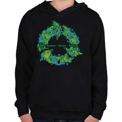 1 kép PRINTFASHION Körforgás - Gyerek kapucnis pulóver - Fekete