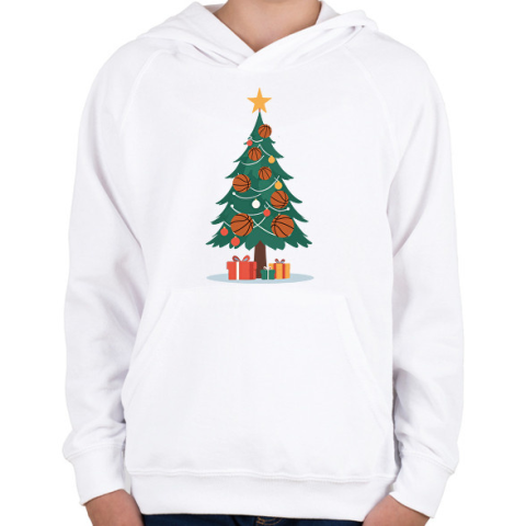 1 kép PRINTFASHION Kosaras karácsonyfa - Gyerek kapucnis pulóver - Fehér