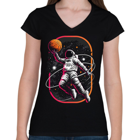 1 kép PRINTFASHION Kosárlabdás asztronauta - Női V-nyakú póló - Fekete