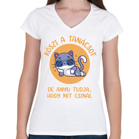 1 kép PRINTFASHION Köszi a tanácsot - Női V-nyakú póló - Fehér