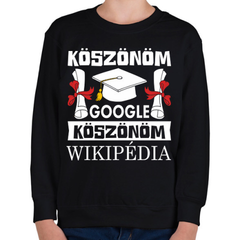 1 kép PRINTFASHION Köszönöm Google, Köszönöm Wikipédia - Gyerek pulóver - Fekete