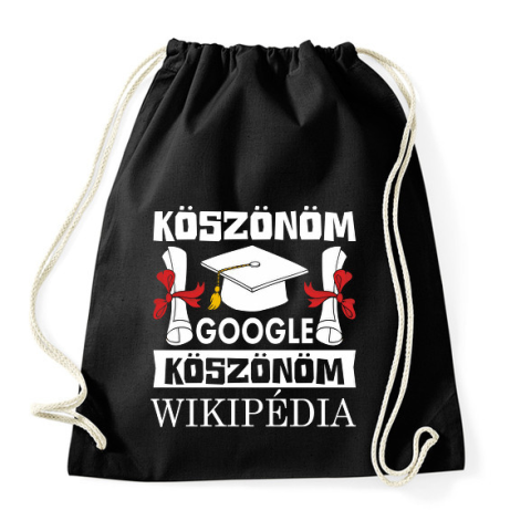 1 kép PRINTFASHION Köszönöm Google, Köszönöm Wikipédia - Sportzsák, Tornazsák - Fekete