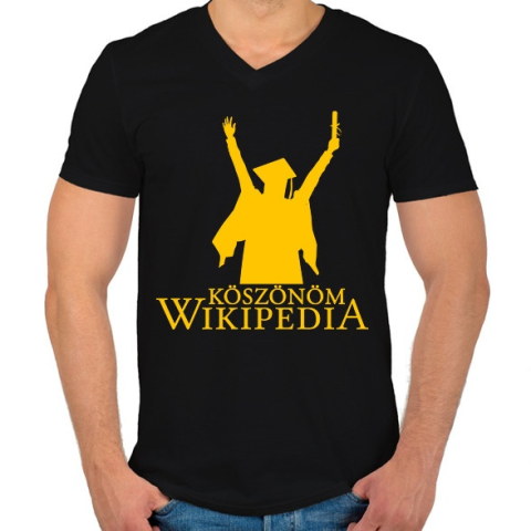 1 kép PRINTFASHION Köszönöm Wikipedia - Férfi V-nyakú póló - Fekete