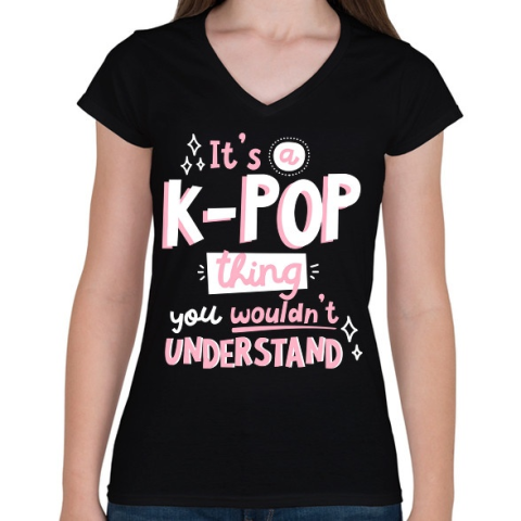 1 kép PRINTFASHION KPOP rajongó - Női V-nyakú póló - Fekete