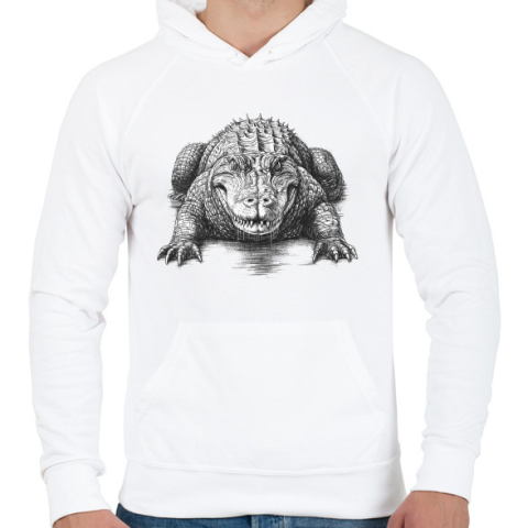 1 kép PRINTFASHION Krokodil - Férfi kapucnis pulóver - Fehér