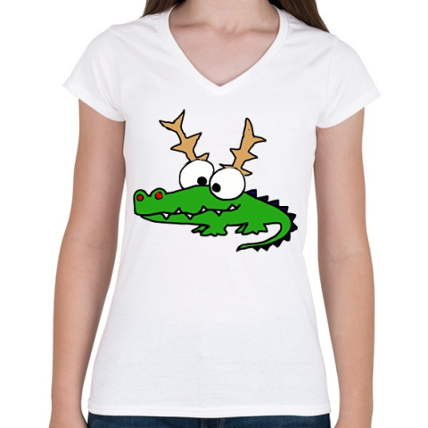 1 kép PRINTFASHION Krokodil Rudolf - Női V-nyakú póló - Fehér