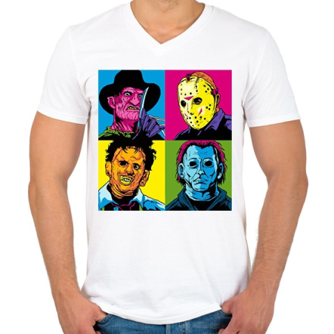 1 kép PRINTFASHION Krueger és a haverok - Férfi V-nyakú póló - Fehér