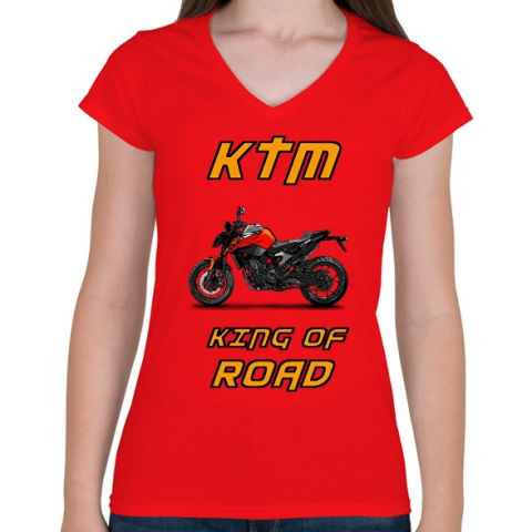 1 kép PRINTFASHION KTM - Női V-nyakú póló - Piros