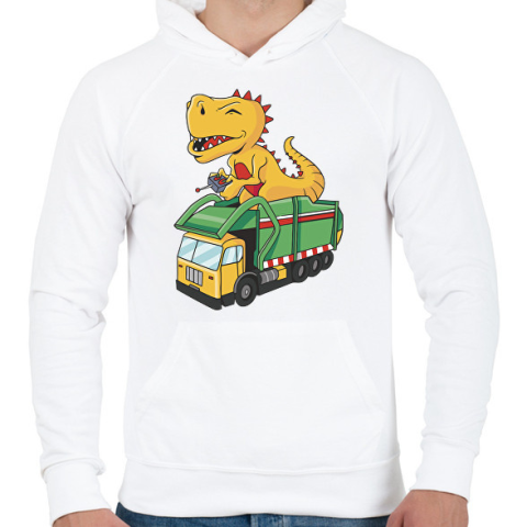 1 kép PRINTFASHION Kukásautó és dínó - Férfi kapucnis pulóver - Fehér