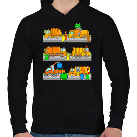 1 kép PRINTFASHION Kukásautók az utcán - Férfi kapucnis pulóver - Fekete