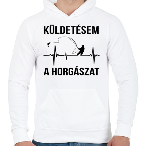 1 kép PRINTFASHION Küldetésem a horgászat - Férfi kapucnis pulóver - Fehér