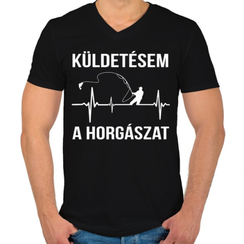 1 kép PRINTFASHION Küldetésem a horgászat - Férfi V-nyakú póló - Fekete