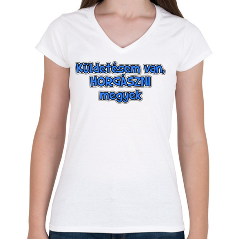 1 kép PRINTFASHION Küldetésem van, horgászni megyek - Női V-nyakú póló - Fehér