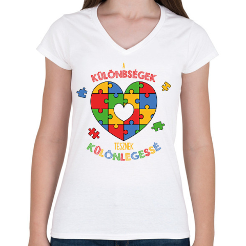 1 kép PRINTFASHION Különlegessé tesz - Női V-nyakú póló - Fehér