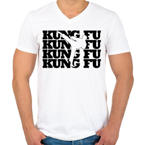 1 kép PRINTFASHION Kung fu - Férfi V-nyakú póló - Fehér