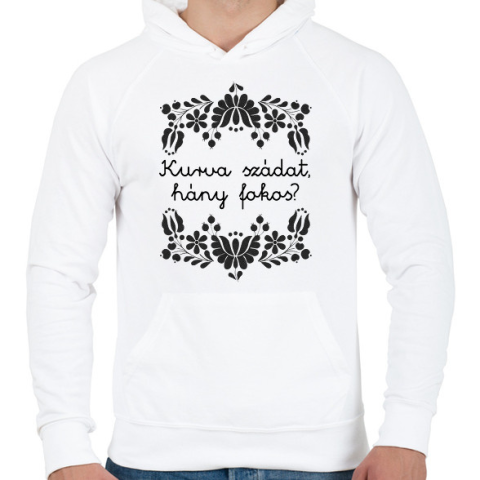 1 kép PRINTFASHION Kurva szádat, hány fokos? - Férfi kapucnis pulóver - Fehér