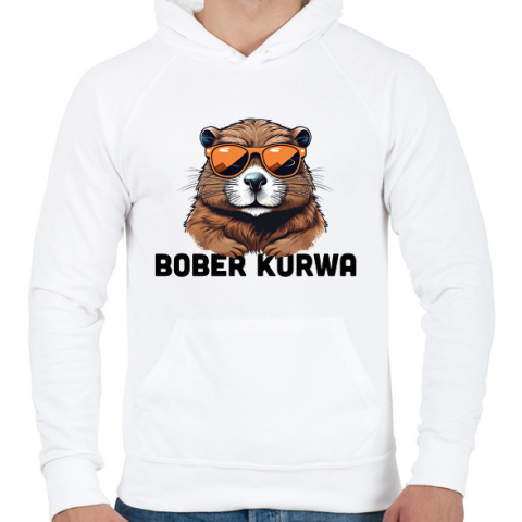 1 kép PRINTFASHION Kurwa Bober - Férfi kapucnis pulóver - Fehér