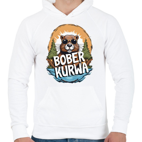 1 kép PRINTFASHION Kurwa Bober - Férfi kapucnis pulóver - Fehér