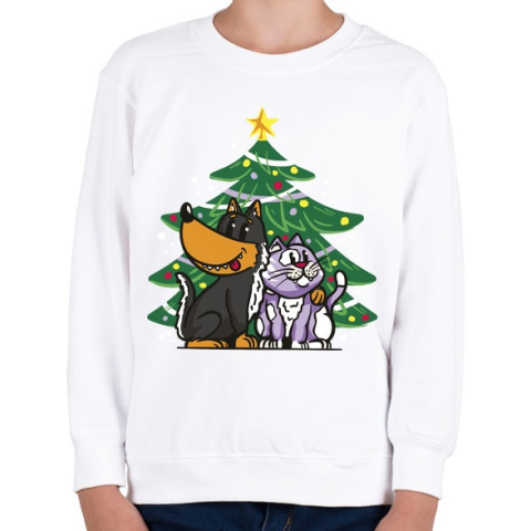 1 kép PRINTFASHION Kutya és macska karácsony - Gyerek pulóver - Fehér