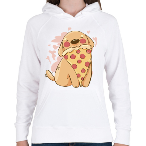 1 kép PRINTFASHION Kutya pizzával - Női kapucnis pulóver - Fehér