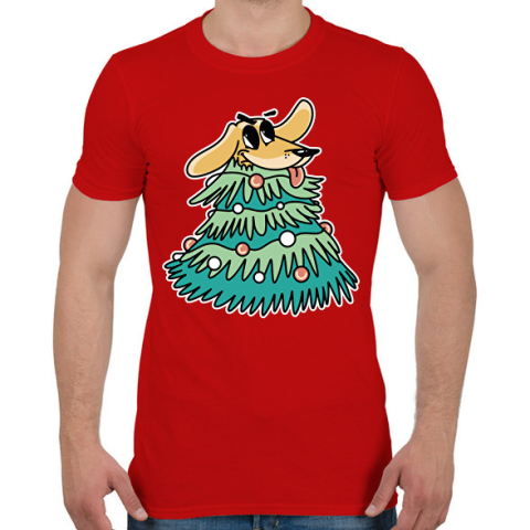 1 kép PRINTFASHION Kutyás karácsony - Férfi póló - Piros