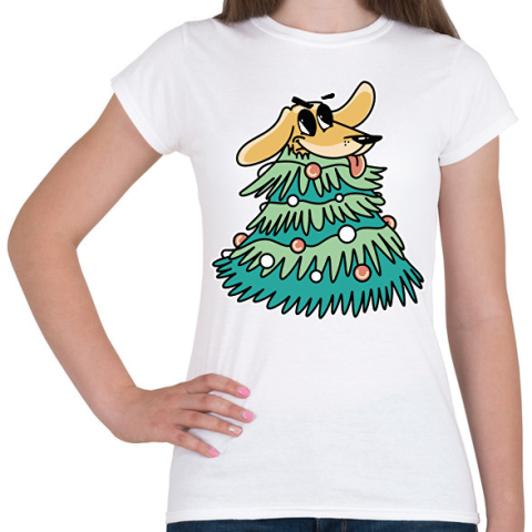 1 kép PRINTFASHION Kutyás karácsony - Női póló - Fehér