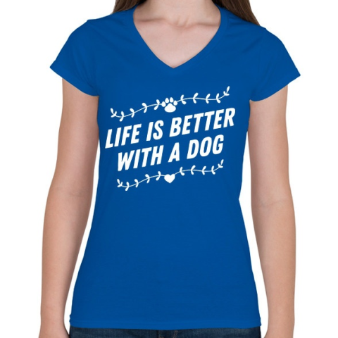 1 kép PRINTFASHION Kutyával jobb az élet - Női V-nyakú póló - Királykék