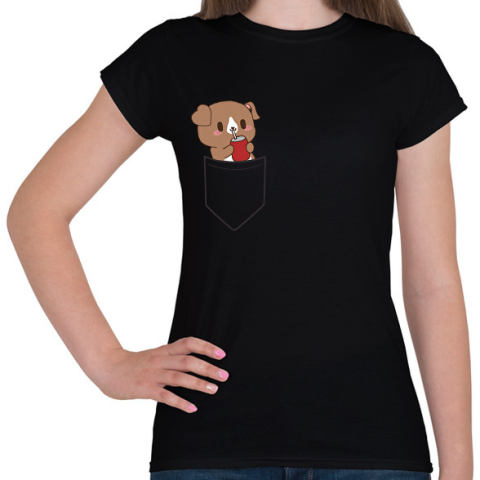 1 kép PRINTFASHION Kutyus zsebben páros minta - Női póló - Fekete
