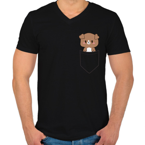 1 kép PRINTFASHION Kutyus zsebben páros minta - pizza - Férfi V-nyakú póló - Fekete