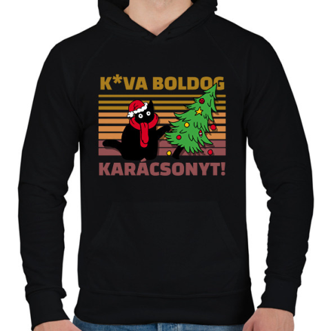 1 kép PRINTFASHION Kva boldog karácsonyt cica - Férfi kapucnis pulóver - Fekete