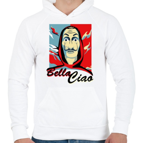 1 kép PRINTFASHION La casa de papel - Bella Ciao - Férfi kapucnis pulóver - Fehér