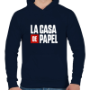 1 kép PRINTFASHION La casa de papel fehér felirat - Férfi kapucnis pulóver - Sötétkék