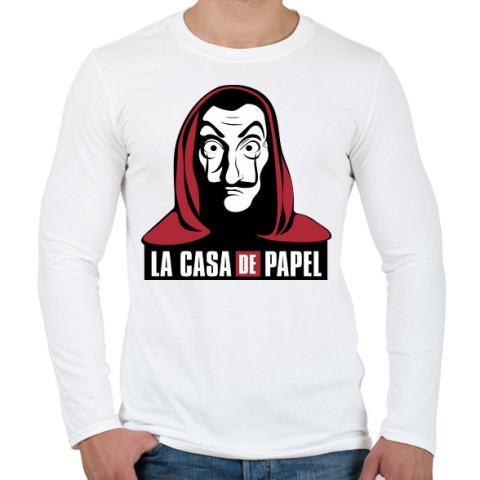 1 kép PRINTFASHION La casa de papel - Férfi hosszú ujjú póló - Fehér