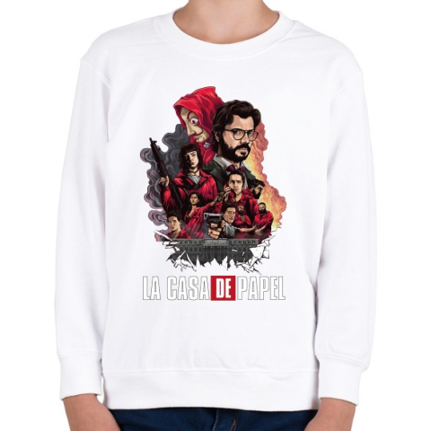 1 kép PRINTFASHION La Casa de Papel - Gyerek pulóver - Fehér
